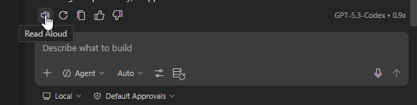 With “VS Code to Speech” enabled, you can also have the chat responses read to you. Once GitHub Copilot is done responding, you can click the speaker icon, and it will read what it responded with.