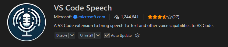 There is an extension within VS Code – “VS Code Speech” that allows you to talk to the Chat.