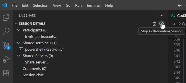 Don’t forget to end your session by clicking “Stop Collaboration Session”. Otherwise your coworkers could come back and leave you some fun comments in your code 🙃
