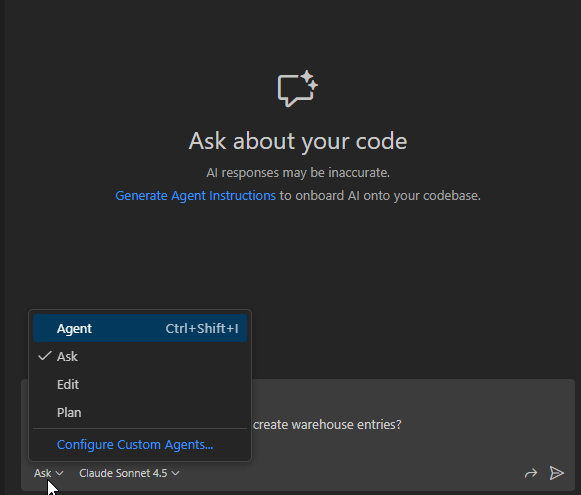 Ask Mode provides quick answers to coding questions, explains code, and offers suggestions or code snippets. Use ask mode when you want to understand how something works, explore ideas, or get help with coding tasks. If you are looking for code suggestions, consider using Edit or Agent Mode.