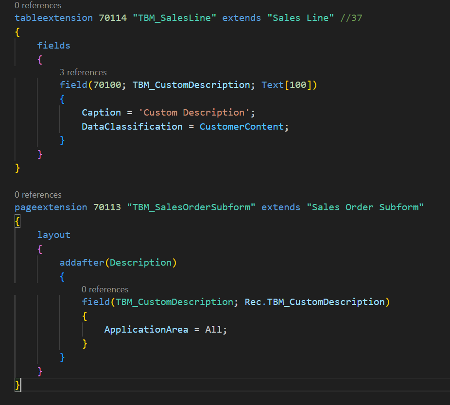 1. Let’s add a new field to the Sales Line table / page for a Custom Description.